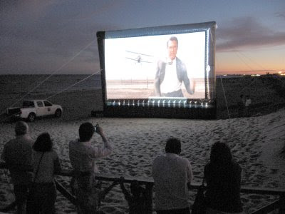 Pantalla colocada a pié de playa en este peculiar certamen cinematográfico.